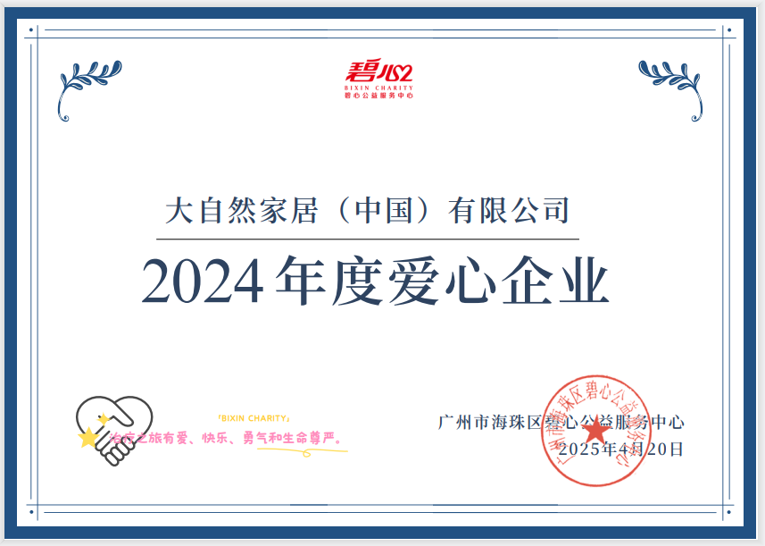 2025-04-28 | 獲頒感謝狀 | 從綠色家居到守護健康,大自然家居以愛之名行公益之路